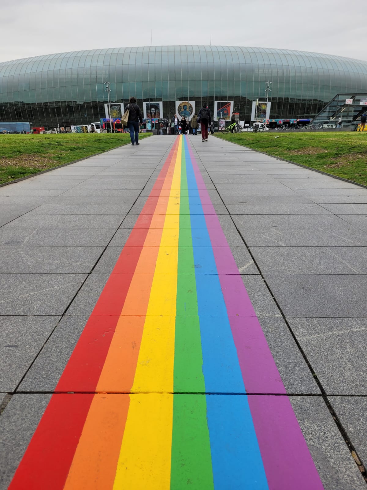 A l’issue de plusieurs années de préparation, l’association Festigays, en collaboration avec l’Eurométropole de Strasbourg et le soutien de la DILCRAH, a inauguré cette allée arc-en-ciel sur la Place de la Gare à Strasbourg, le 17 mai 2023, à l’occasion du lancement du Mois des Visibilités.